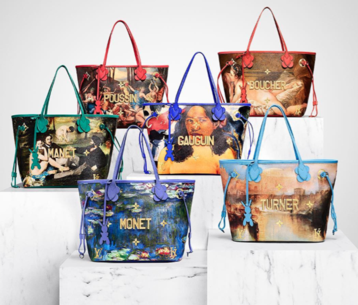 «Nomi che fanno parte del mio dna. Nel momento in cui qualcuno cammina per strada o si siede al bar con questa borsa, sta comunicando amore per l’umanesimo» ha dichiarato Jeff Koons, riferendosi nel caso specifico alla Neverfull di Manet.