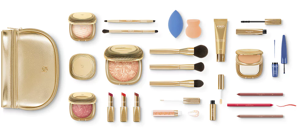 Questa nuova collezione di KIKO è dedicata all’estate: riflessi dorati, trucchi ed accessori pensati per donare un incarnato luminoso con un make up leggero. Le labbra sono opache e definite, i tratti precisi e brillanti grazie ai finish metallici e alle formule setose di ombretti liquidi, rossetti mat, fondotinta waterproof ed eyeliner.